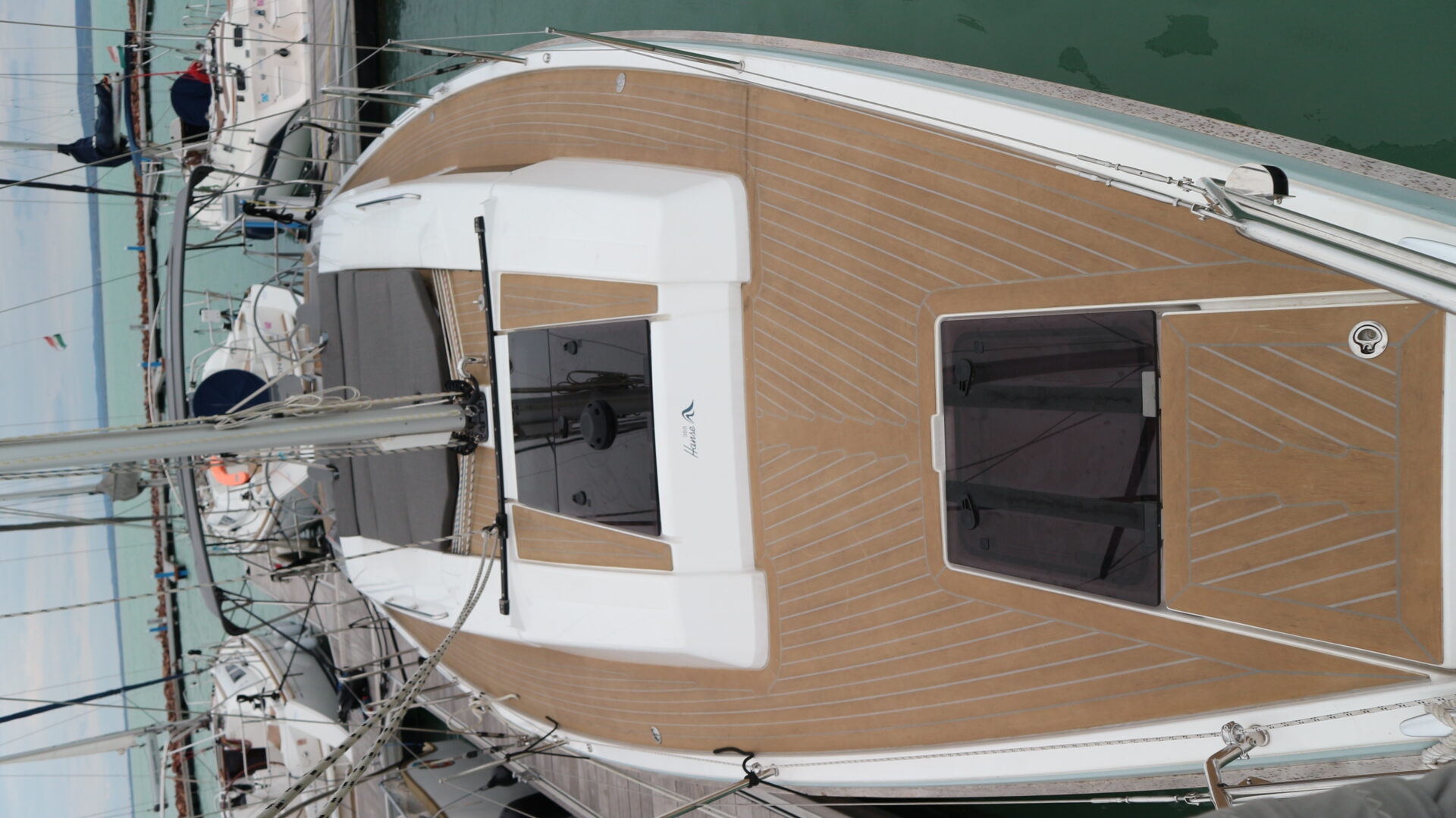 Ez a Hanse vitorlás új lehetőségekkel teli világot nyit meg bérlője előtt. Méretes vitorlafelülete és optimálisan kialakított hajóteste gyorsan repíti a cél felé, miközben utasai teljes biztonságban vannak – tartózkodjanak bárhol a fedélzeten. Vízvonala – függetlenül az aktuális dőlésszögtől – a lehető leghosszabb, ami szintén a tempós haladás feltétele. Ugyanakkor – a függőleges orral és tattal – maximalizálja a belső tér méretét. Minimalista dizájnja jól tükrözi a hajó egyszerű kezelhetőségét: az összes kötelet hátravezettük a kormányállásba, így egy személy el tudja irányítani a vitorlást.